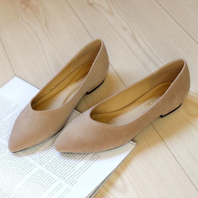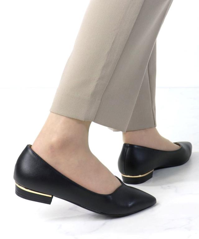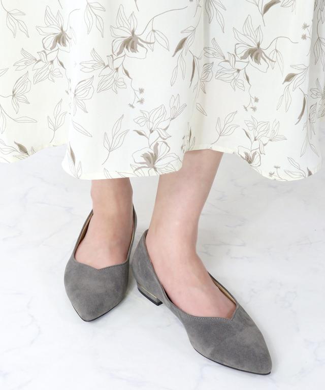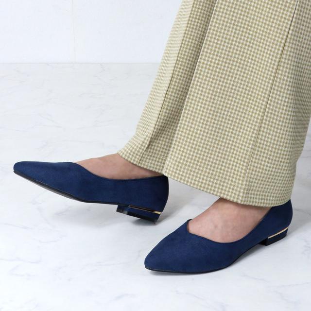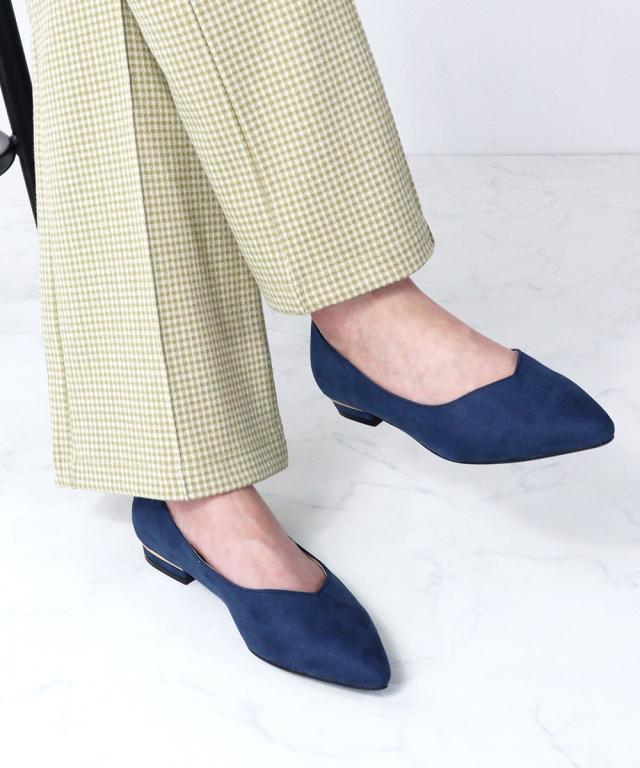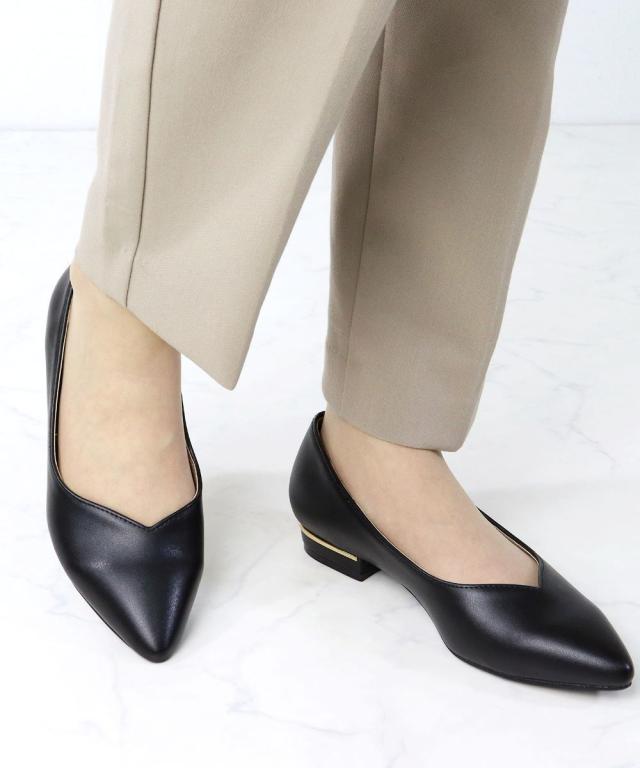 シルエットと履き心地を追求したポインテッドトゥフラットVカット美脚パンプス!