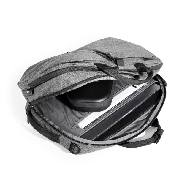 バックパックとしてアクティブに、背面のポケットにバックパックストラップを収納することでビジネスバッグとしてスマートに、付属するショルダーストラップを装着することでカジュアルなショルダーバッグとしてお使いいただける3WAYデザイン。