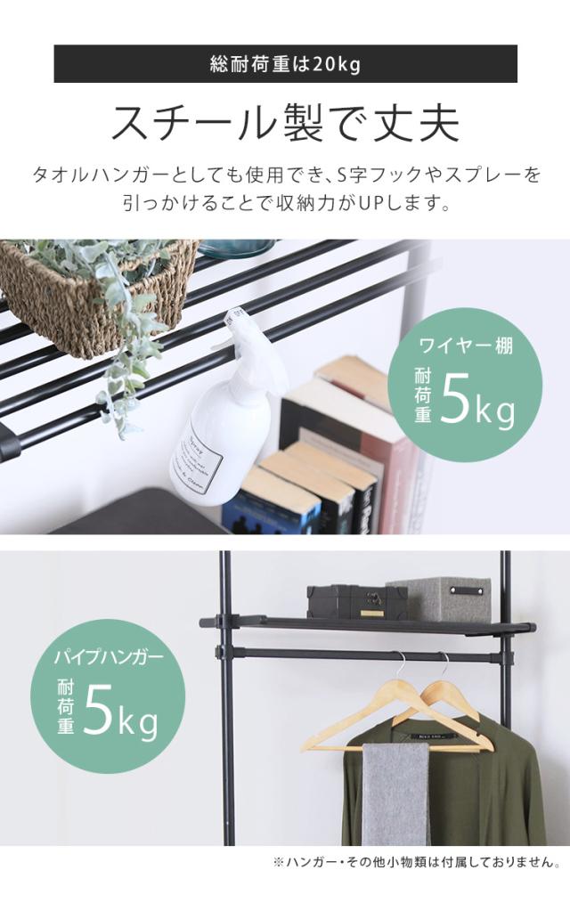 - 狭い脱衣場に入浴後の服を置いて置くように購入しました。幅は服を三つおりで置くなら丁度良いかと。突っ張りなのでうちは、下にボックスのような物を支えにしています