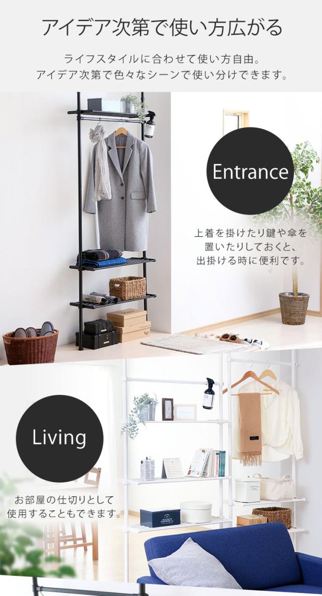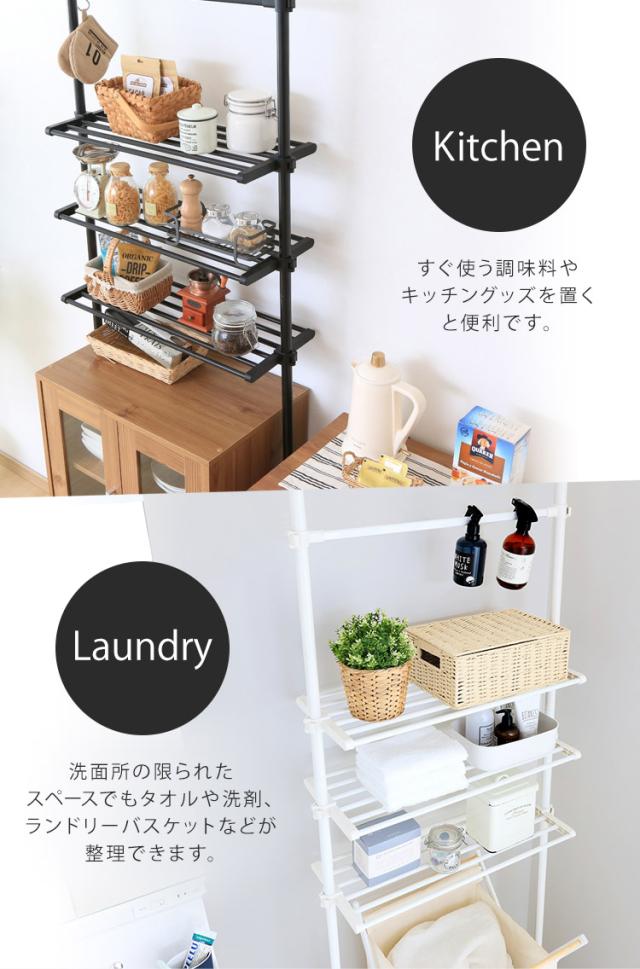 リビングやキッチン、洗面所など様々な場所に使用でき、収納範囲が広がります。