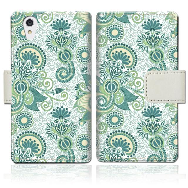 AQUOS sense2 SHV43 SH-01L Android OneS5 SH-M08 共通 スマホケース 手帳型 カバー 【グリーンペイズリーデザイン】