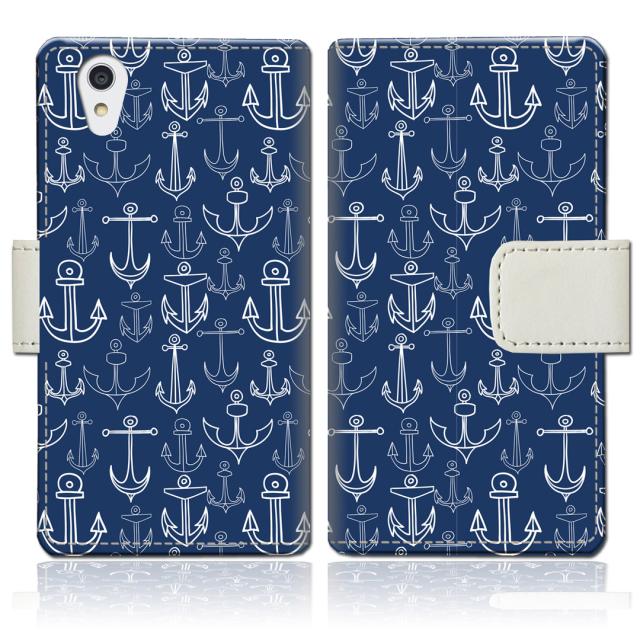 AQUOS sense2 SHV43 SH-01L Android OneS5 SH-M08 共通 - マリン柄Aデザイン - 手帳型 スマホケース 手帳ケース 手帳カバー スマホカバー