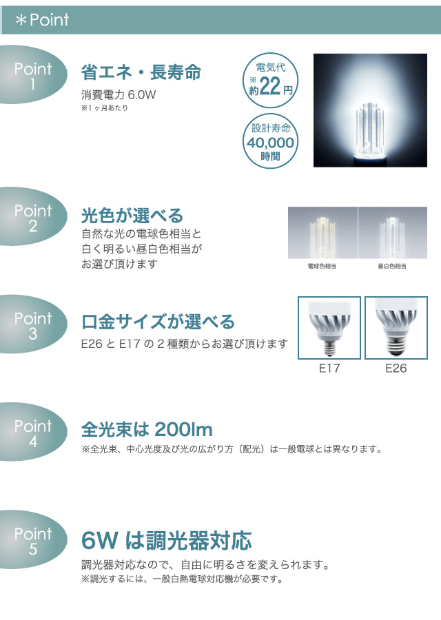 シリーズ唯一の調光器対応モデル 長寿命LEDライトLED電球