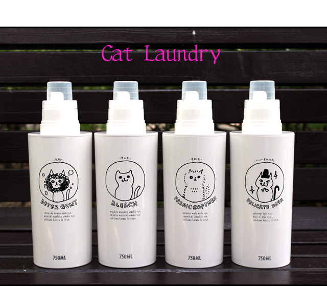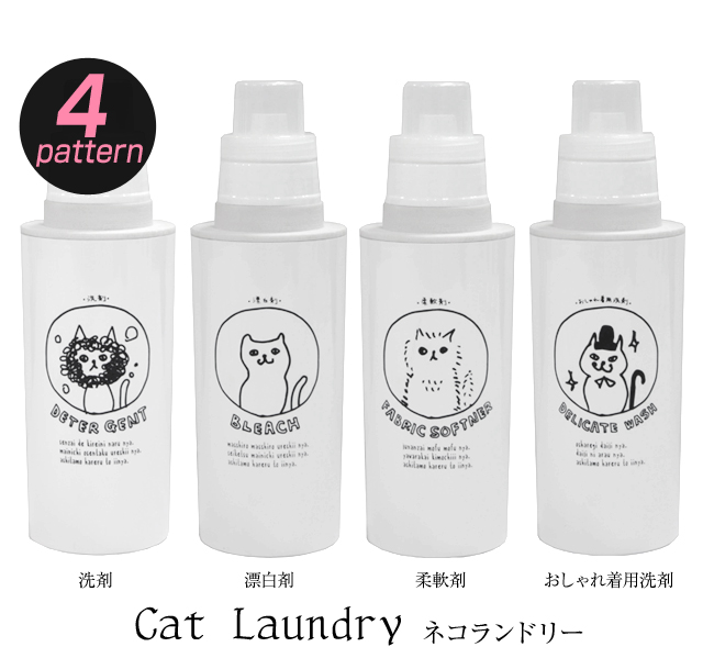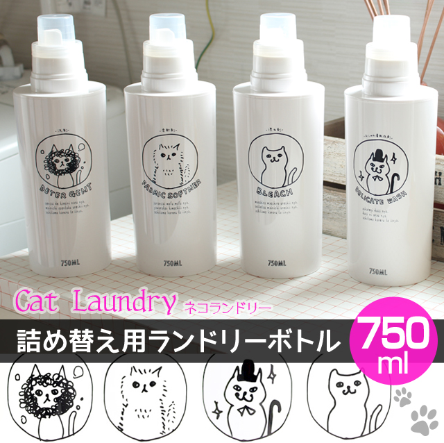 ランドリーボトル750ml詰め替え用ボトル ネコランドリー特大 ランドリーショップ特大 洗剤や柔軟剤、漂白剤やおしゃれ着洗剤など、おしゃれな詰替用ボトルで生活感をなくしおしゃれなウォッシュルームへ メイドインジャパン