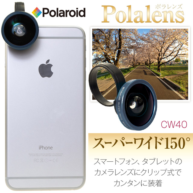 ポラレンズ CW40 スーパーワイド150° スマートフォン、タブレットのカメラレンズにクリップ式でカンタンに装着するだけで広角になり自撮りや風景、動画撮影に便利