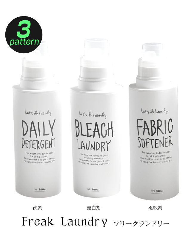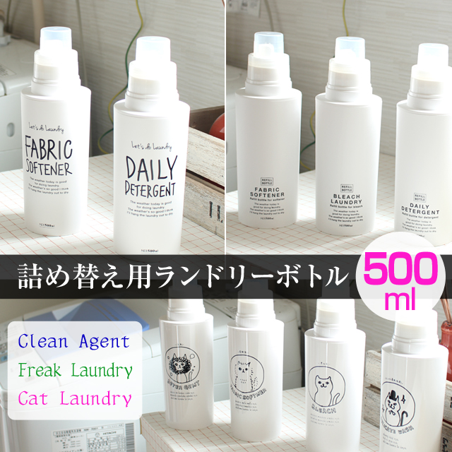ランドリーボトル500ml詰め替え用ボトル ネコランドリークリーンエージェント フリークランドリー 洗剤や柔軟剤、漂白剤やおしゃれ着用洗剤など、おしゃれな詰替用ボトルで生活感をなくす メイドインジャパン