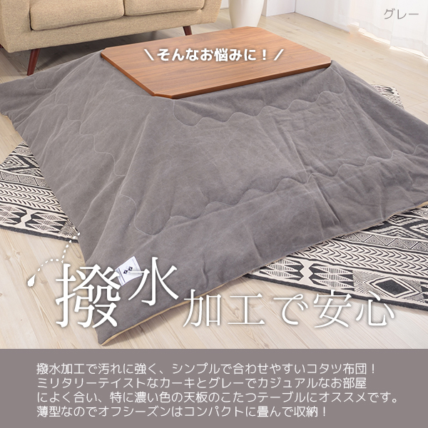 はっ水加工 薄掛け コタツ布団 正方形 190×190 送料無料 75 80 90 天板対応 おしゃれ 撥水 グレー カーキ カジュアル 薄手 省スペース こたつ布団 激安 格安 安い セール