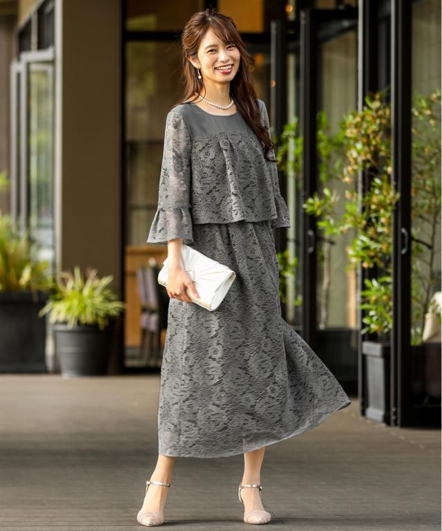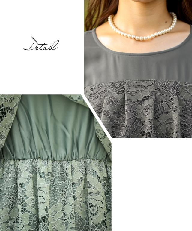 品質=[レース]ナイロン50%・綿25%・レーヨン25% [別布]ポリエステル100%(シフォン)[裏地]ポリエステル100% 【裏地】有(身頃部) 後涙ボタン開 ウエスト総ゴム入 レース柄の出方が多少異なる場合があります。 繊細なレースを使用しているため、引っかかりなどにご注意ください。※注意コメントお客様のパソコン・スマホのモニターや照明等により、実際のお色と多少異なるように感じられる場合がございます。ご了承くださいませ。中国製ドライクリーニング