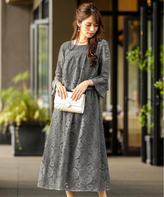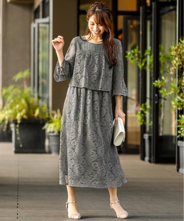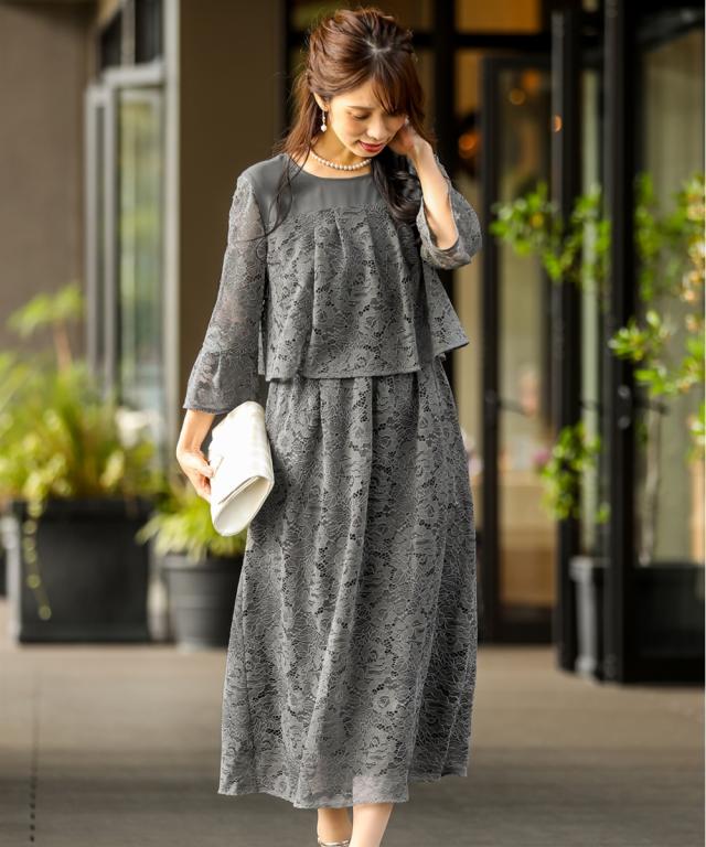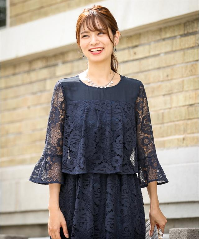 品質=[レース]ナイロン50%・綿25%・レーヨン25% [別布]ポリエステル100%(シフォン)[裏地]ポリエステル100% 【裏地】有(身頃部) 後涙ボタン開 ウエスト総ゴム入 レース柄の出方が多少異なる場合があります。 繊細なレースを使用しているため、引っかかりなどにご注意ください。※注意コメントお客様のパソコン・スマホのモニターや照明等により、実際のお色と多少異なるように感じられる場合がございます。ご了承くださいませ。 中国製 ドライクリーニング