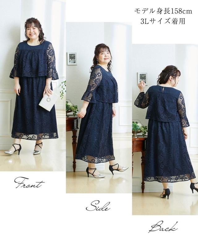 大人気ドレスの新デザインワンピースドレスが登場♪レースをたっぷりと贅沢に使用し、体型を綺麗にカバーしてくれるフレアロング丈ワンピース♪LL〜8Lまでに大きいサイズバリエーションを揃えました♪★こだわりポイント上品なレースをたっぷりと使用!トレンドを詰め込んだ上品で華やかなワンピースドレス♪デコルテ部分にシフォンを使用し、透け感を抑え、落ち着いた印象に♪お手持ちのアクセサリーが、しっかり映えるな仕様にしました♪胸元はふらし仕様で、重ね着風に♪ふんわり柔らかい印象をプラス♪袖あり・ロング丈の落ち着いたデザイン