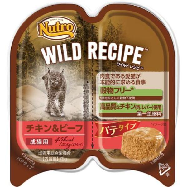 ニュートロ ワイルド レシピ キャット チキン&ビーフパテ トレイ 成猫用 75g×24コ
