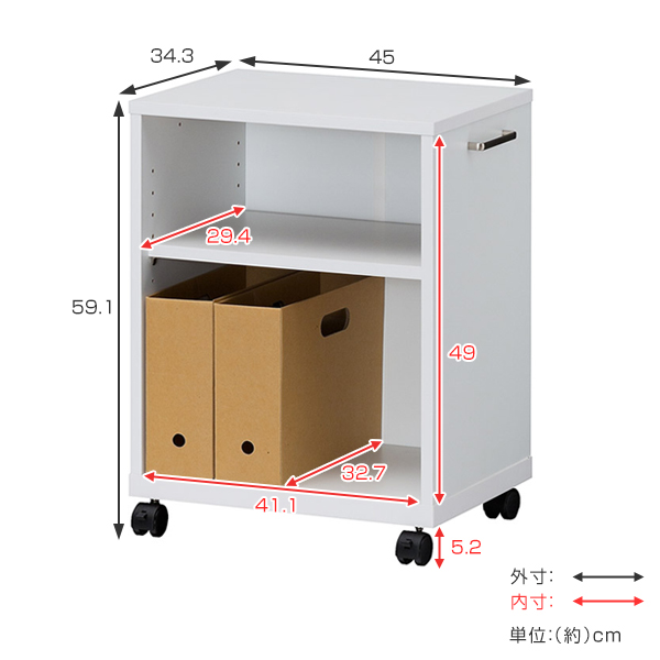 | 材質 | 本体:プリント紙化粧繊維板、キャスター:再生ナイロン、引手:亜鉛合金 |