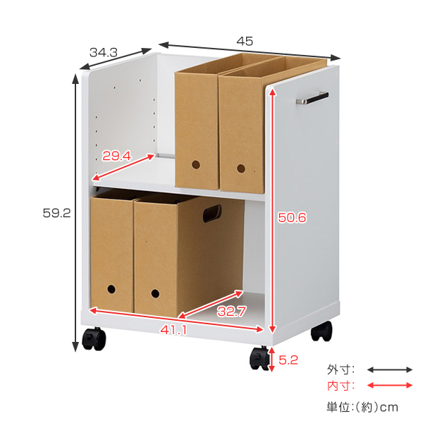 書類ラック 幅45cm 2段 天板無し キャスター付 オフィス家具 オフィスコ2 ( 収納ワゴン サイドワゴン 収納ラック 本棚 オフィス 収納棚 シェルフ 多目的ラック ラック ブックシェルフ ファイル A4 A4ファイル 白 ホワイト )