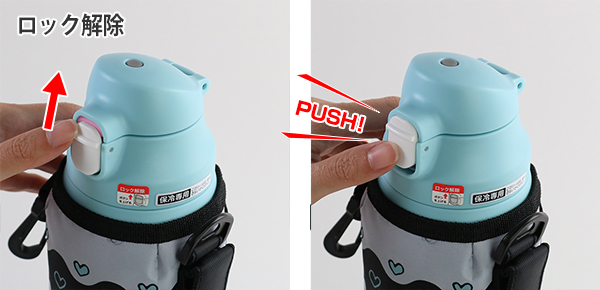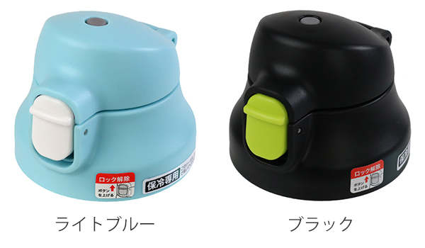 ボタンを押すだけの簡単オープン!片手で開けられるので、飲みたい時にすばやく水分補給ができます。カバンの中などで不意に開いてしまうことを防ぐ安心のロック機能付きです。