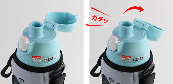 フタをカチッと音がするまで倒すと、飲んでいる途中でもフタが戻ってきません。