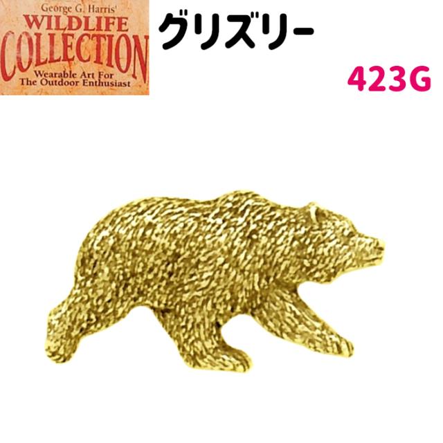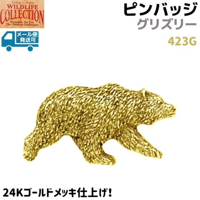 ピンバッジ グリズリー 423G 熊 クマ くま bear 24K ゴールド メッキ 3.3×1.7cm ピンズ バッチ スズ ピューター メンズ スーツ 襟 おしゃれ かわいい 動物 アニマル 可愛い ブローチ バッジ バッヂ キャッチ 留め具 金具 メール便発送可 ポイント消化