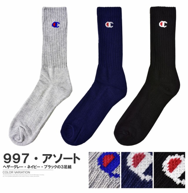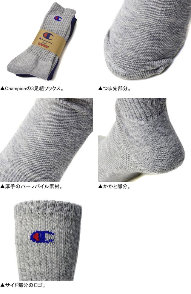 ブランド「Champion・チャンピオン」のクルー丈ソックス3足組です。