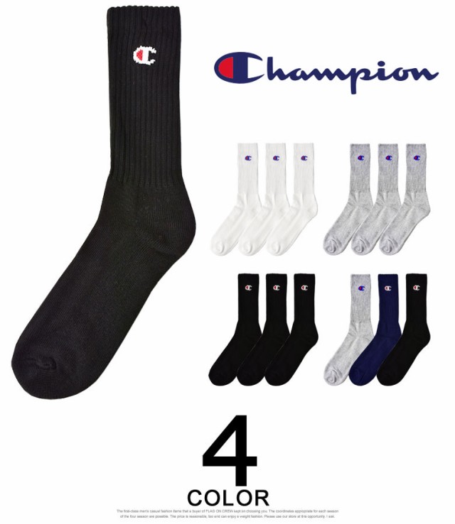 Champion チャンピオン フルレングスソックス 3足組 メンズ 靴下 3P 白 黒 グレー CMSCY002 正規品【Z1N】【パケ2】
