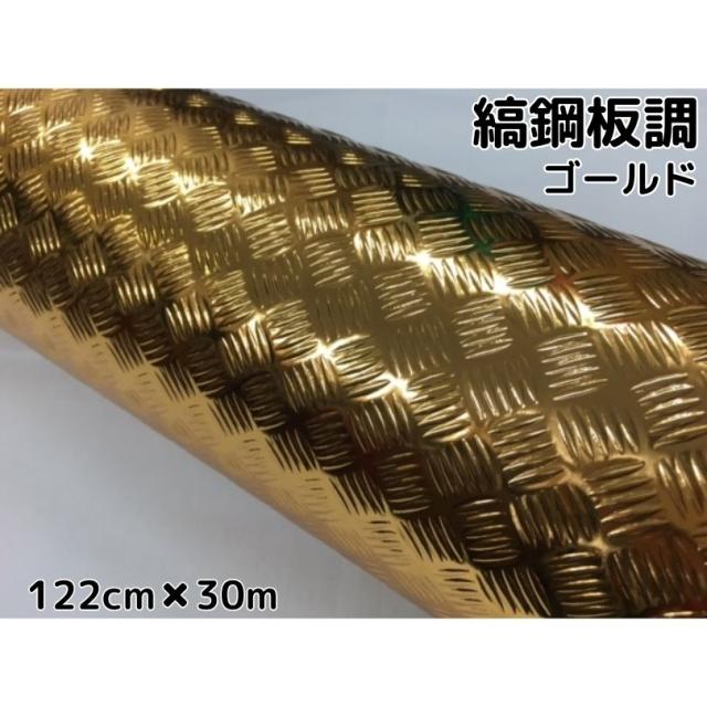 ラッピングシート 122cm×30m 縞鋼板風ゴールド アルミメタルチェッカープレート カーラッピングフィルム カッティングシート 鉄板風シート