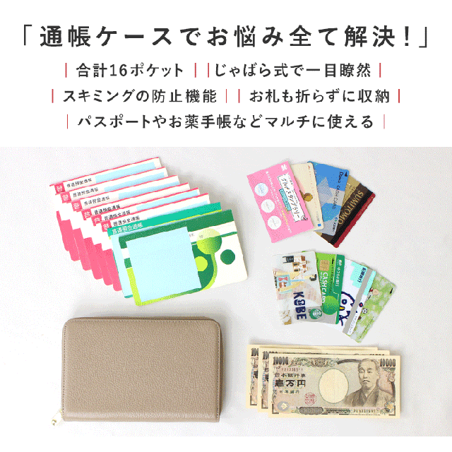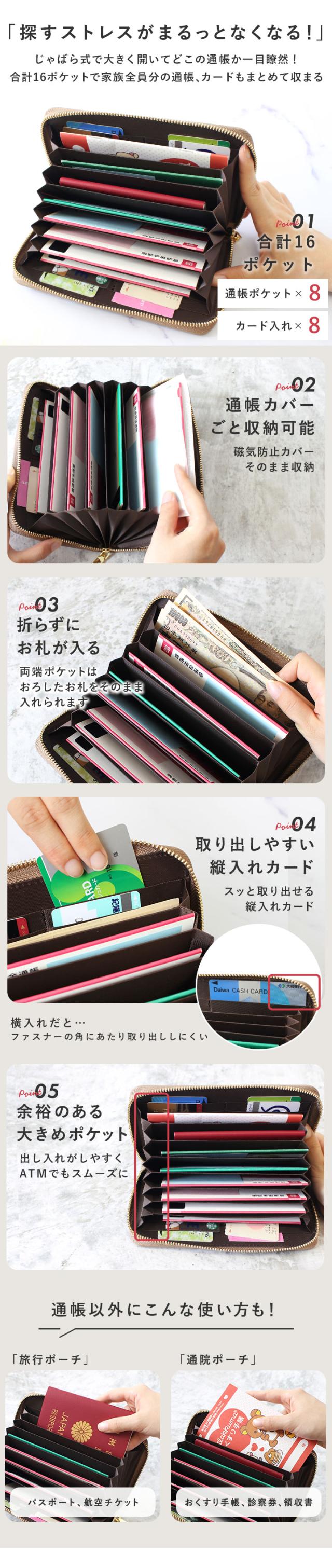 通帳ケース レディース カードケース 本革 通帳カバー カード入れ マルチケース 通帳入れ ポーチ ジャバラ パスポートケース スキミング防止 磁気 ラウンドファスナー メンズ 大容量 RFID genuine【6055】