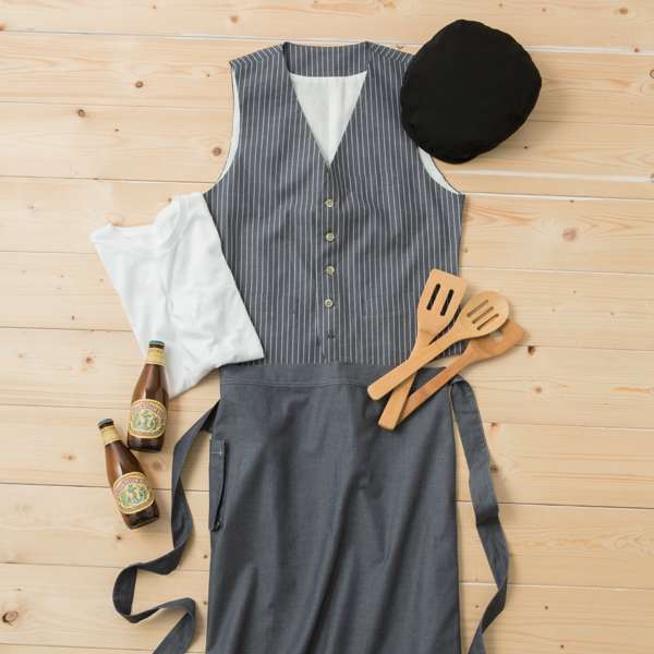 ■エプロンや小物と組み合わせて、カジュアルにも、スタイリッシュにも使えるストライプワークキャップ。