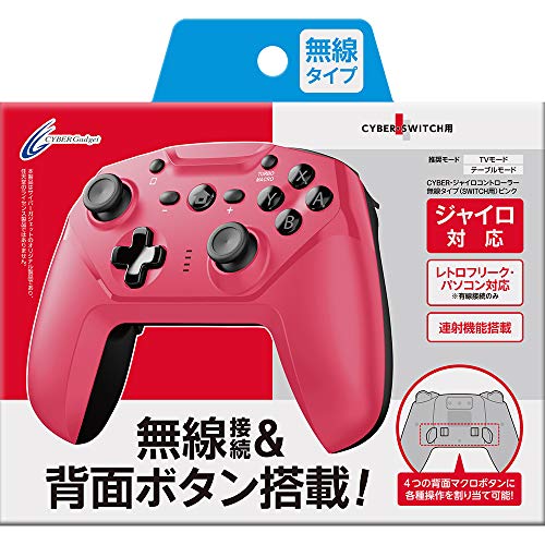 【連射/背面ボタン搭載】 CYBER ・ ジャイロコントローラー 無線タイプ ( SWITCH 用) ピンク