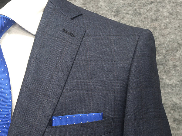 秋冬物 [ロロピアーナ] Super130s生地使用 スタイリッシュ2釦スーツ 藍紺/窓枠チェック [YA7] メンズスーツ LOS37