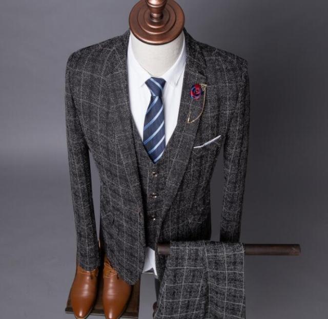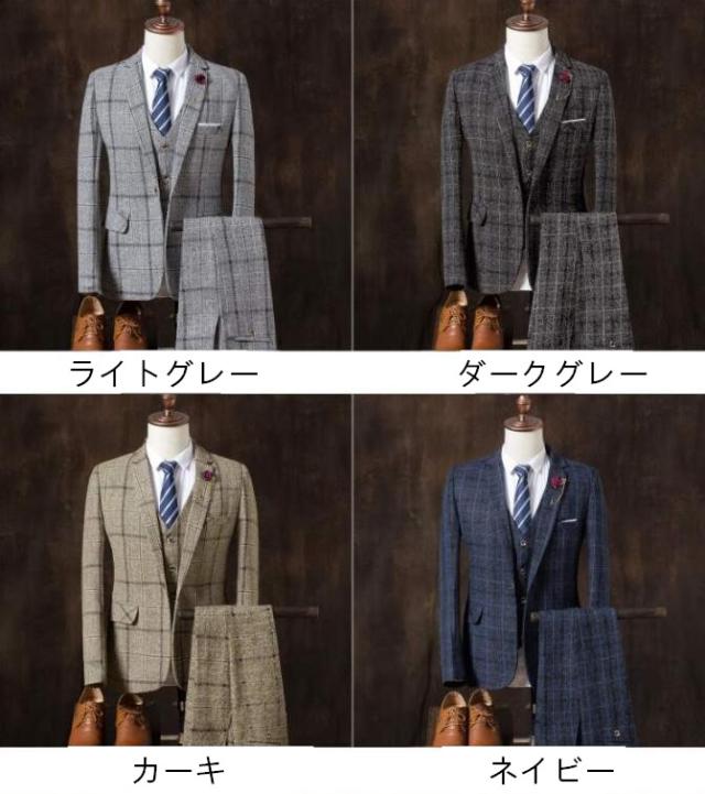3ピーススーツ スリーピーススーツ メンズ ビジネススーツ 1つボタン チェック柄 紳士 スリムスーツ 結婚式 入学式 新生活 敬老の日