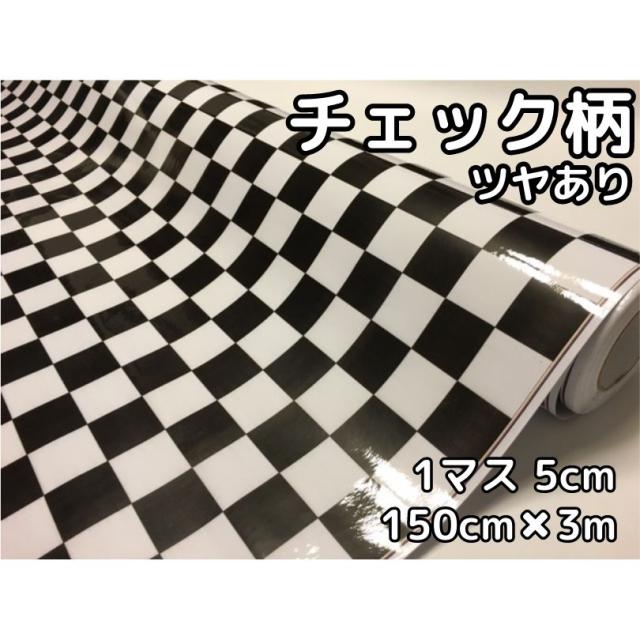 ラッピングシート 150cm×3m 艶ありチェック柄チェッカーフラッグ5cm角 カーラッピングフィルム 耐熱耐水曲面対応裏溝付 カッティングシート