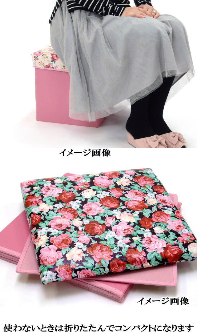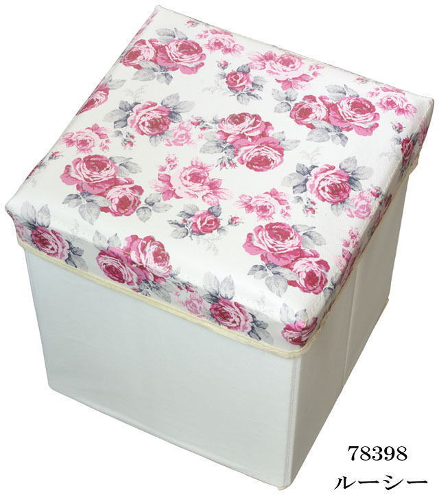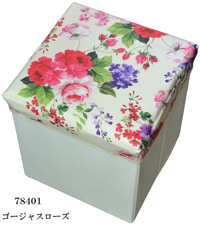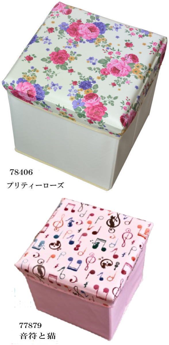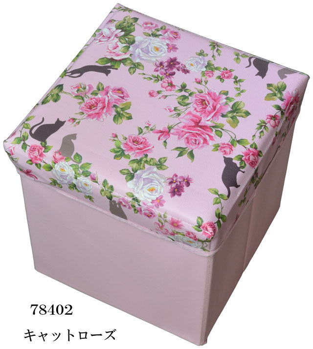 素敵なバラ柄とネコ柄の収納スツール 【正方形タイプ】 です。