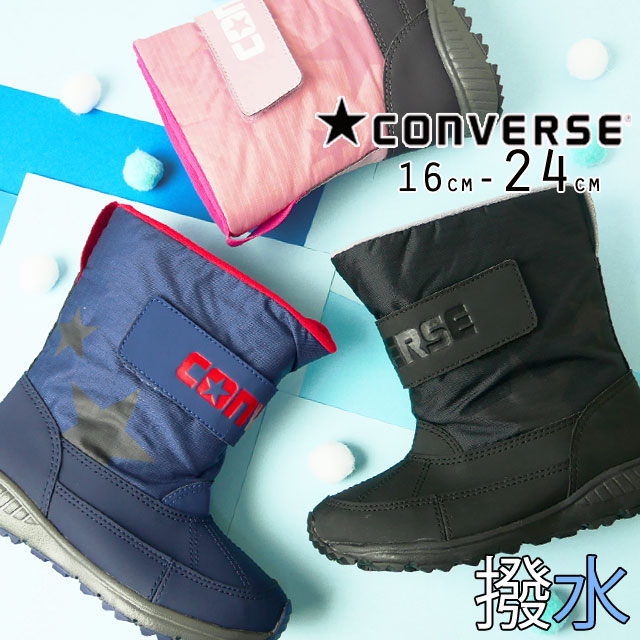 送料無料 キッズ ジュニア 男の子 女の子 ブーツ コンバース CONVERSE WR CVスター 子供靴 チャイルド 防滑 撥水 雨 雪 軽量 マジックテープ ネイビー ブラック ピンク