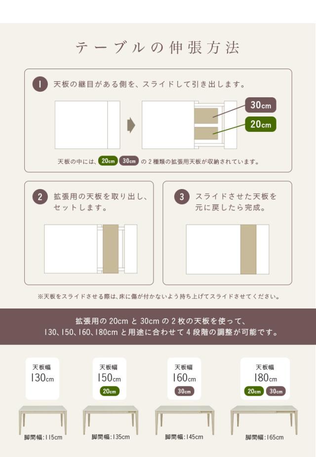 テーブル:W130〜180 x D85 x H70cm