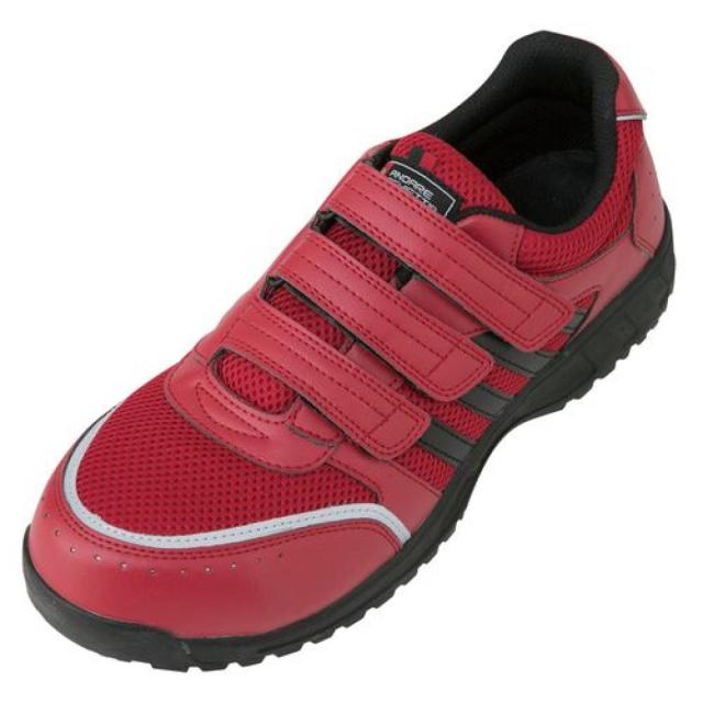 コーコス信岡 プロ スニーカー A-45000 レッド 26.0cm 作業靴 セーフティー 鋼製先芯 JSAA A種 耐滑 耐油 衝撃吸収 反射素材 通気性 マジックテープ