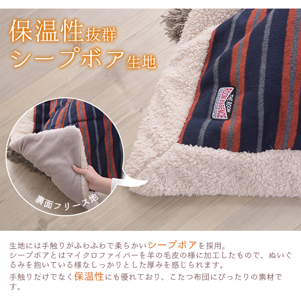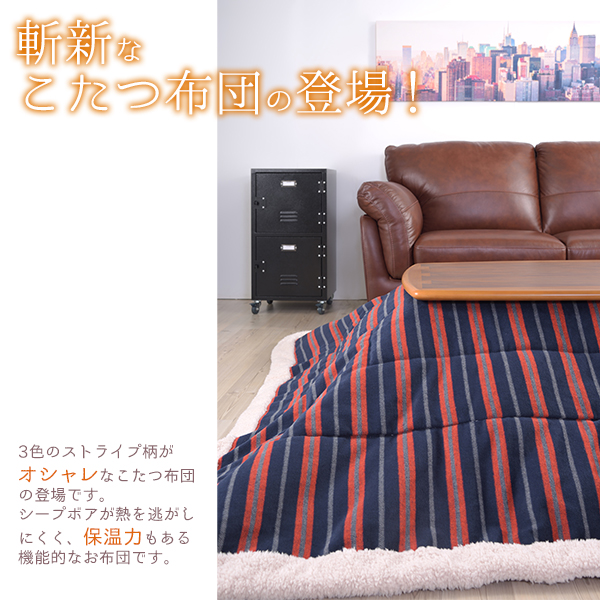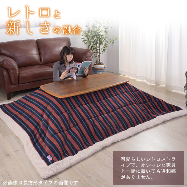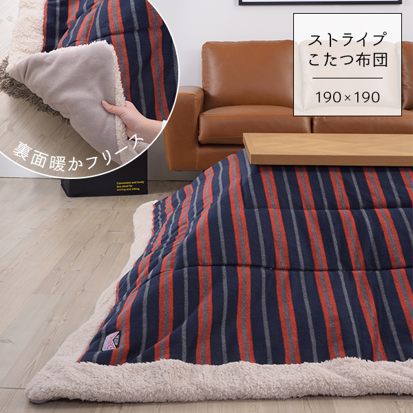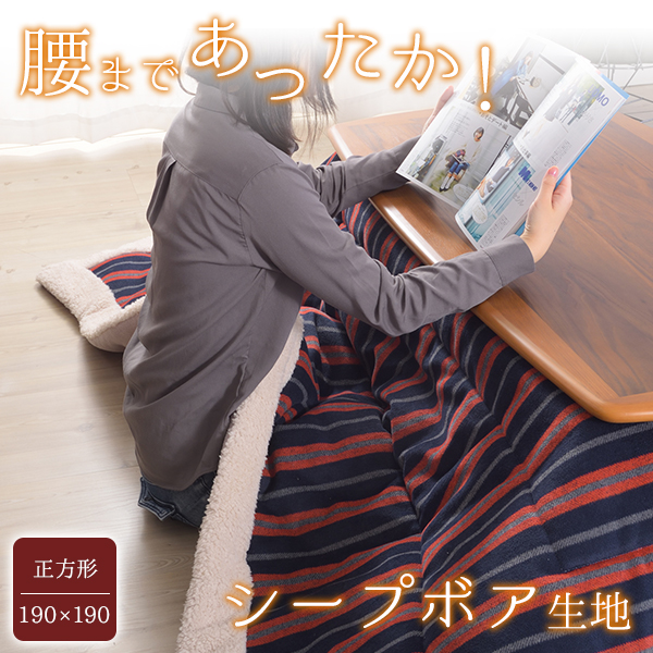 シープボアで腰まであったか 薄掛け こたつ布団 正方形 ストライプ柄 190×190 送料無料 こたつ用掛布団 薄手 薄型 薄い コタツ布団 おしゃれ こたつ掛け布団 安い