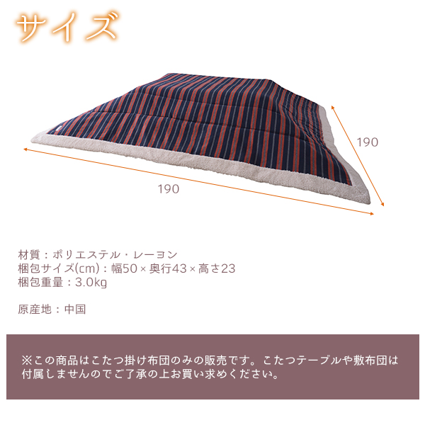※この商品はこたつ掛け布団のみの販売です。こたつテーブルや敷布団は付属しませんのでご了承の上お買い求めください。