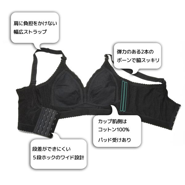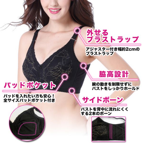 小さく見せる ブラ 着痩せ スマート スリム 大きい胸 グラマー さらし 胸つぶし 大きい 胸 バスト サイズ ブラジャー ワイヤーなし パッド 無し レディース ファッション 女性用 インナー 下着 しっかり 脇高 脇肉 贅肉 胸囲 75 80 85 90 95 B C D E F G セクシー ランジェリー BRA ポンタ ポイント 消化 交換 超 還元 祭 セール タイム 送料無料 女性 補正 矯正 加圧 着圧 パッド パット ポケット 付き 肉 背中 脇 贅肉 優しく 包む ブラジャーのみ 黒 黒色 くろ の が はみ出ない 外せる ストラップ ブラ紐 紐 かた紐 かたひも 肩紐 体型カバー はみ肉 しない 小さく 見せる 見える