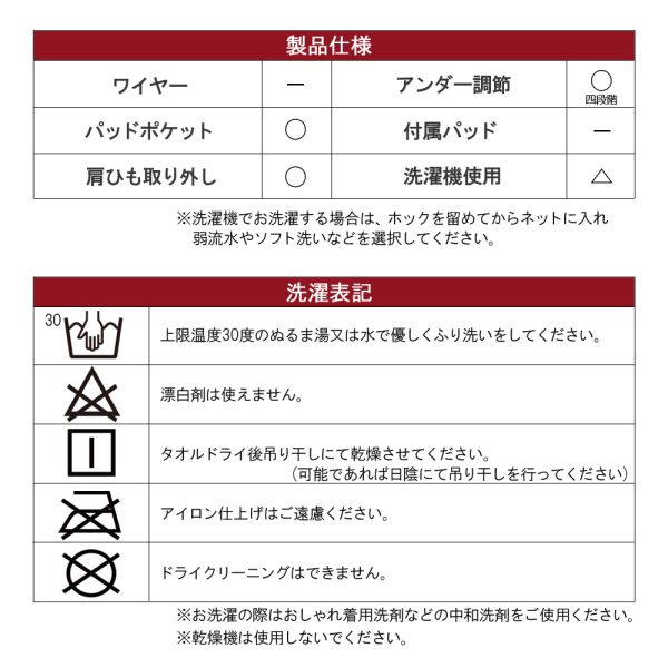 カップ裏地:コットン100%