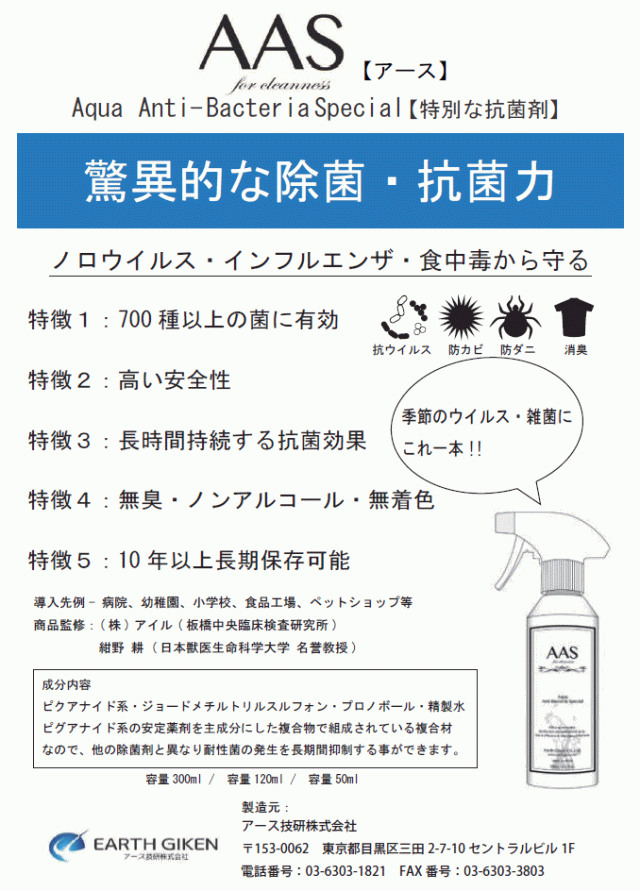 ◆AAS アース(大)◆除菌・殺菌・防カビ・防ダニ・消臭ミスト◆詰め替え用 4リットル AAS4000