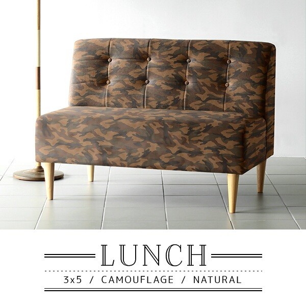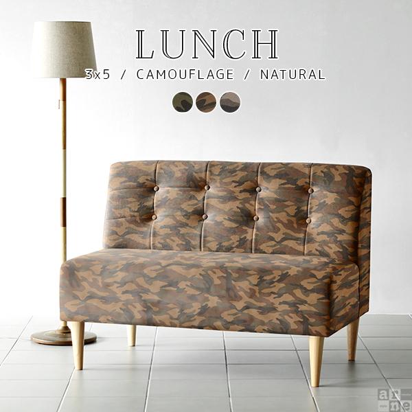 ソファ 迷彩 ソファー 2人掛け 二人掛け 2人 アームレス 肘なし カフェ ダイニングソファ 北欧 おしゃれ Lunch 3×5アームレス/脚NA □