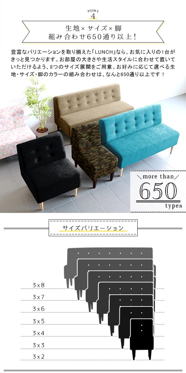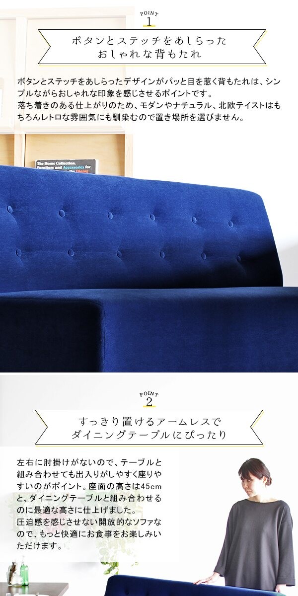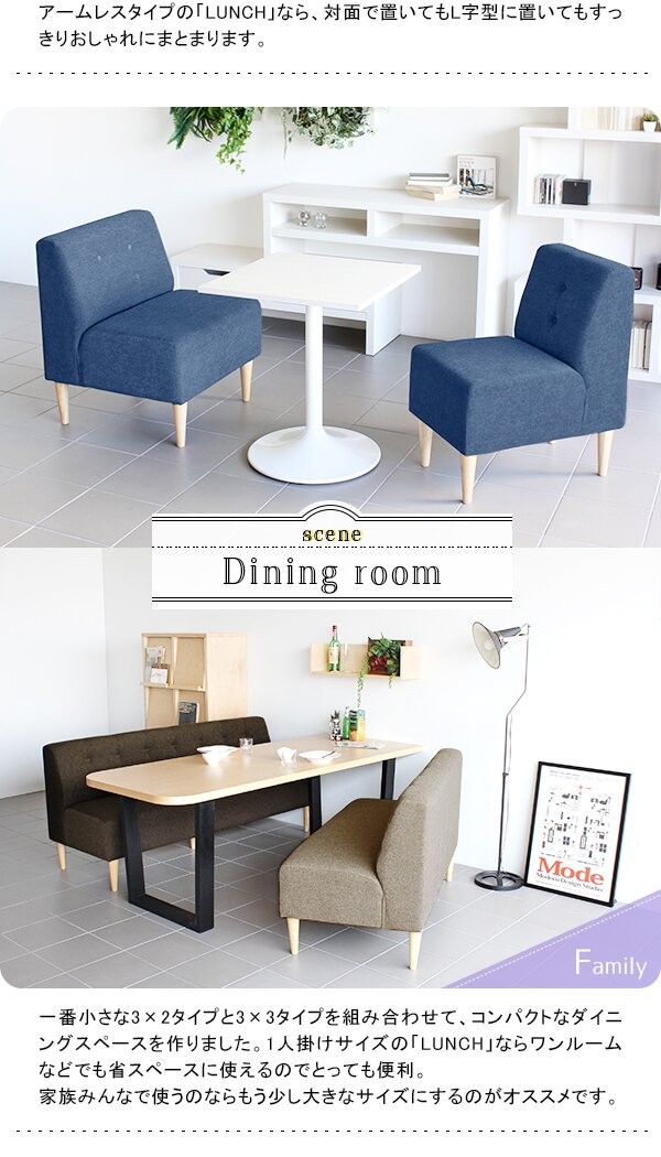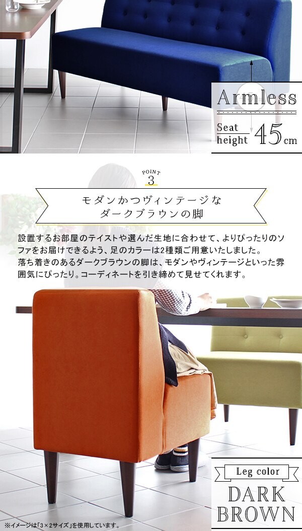 ソファ アームレスソファ 3人掛け 三人掛け 北欧 おしゃれ 肘なし カフェ ダイニングソファ 160cm リビング Lunch 3×7アームレス/脚DB □