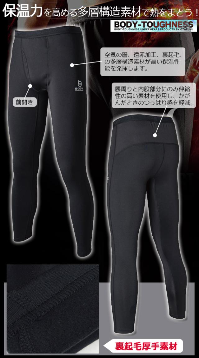 BTヒートブースト ヘビーウェイト ロングタイツ 秋冬用 BODY TOUGHNESS ボディタフネス メンズ インナー 微細裏起毛 遠赤外線加工 前開き おたふく手袋 JW-183