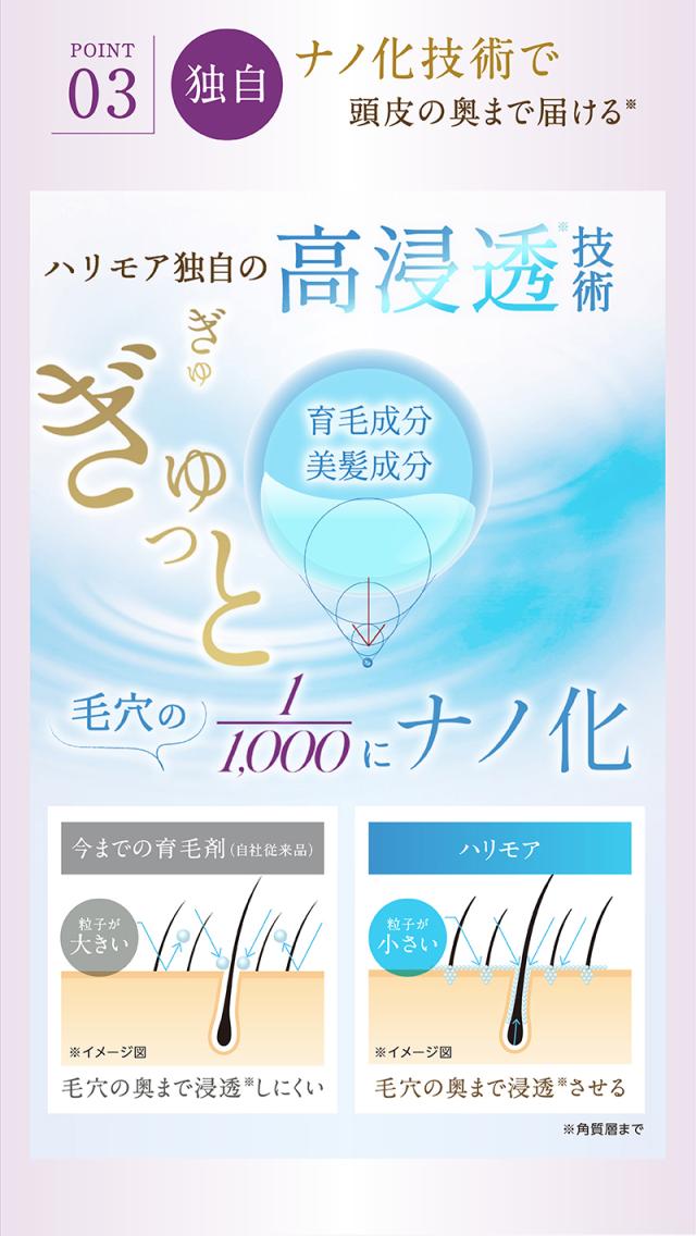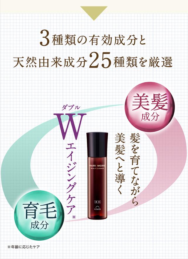 ための育毛剤『薬用ハリモア』です。加齢やカラーリング、
