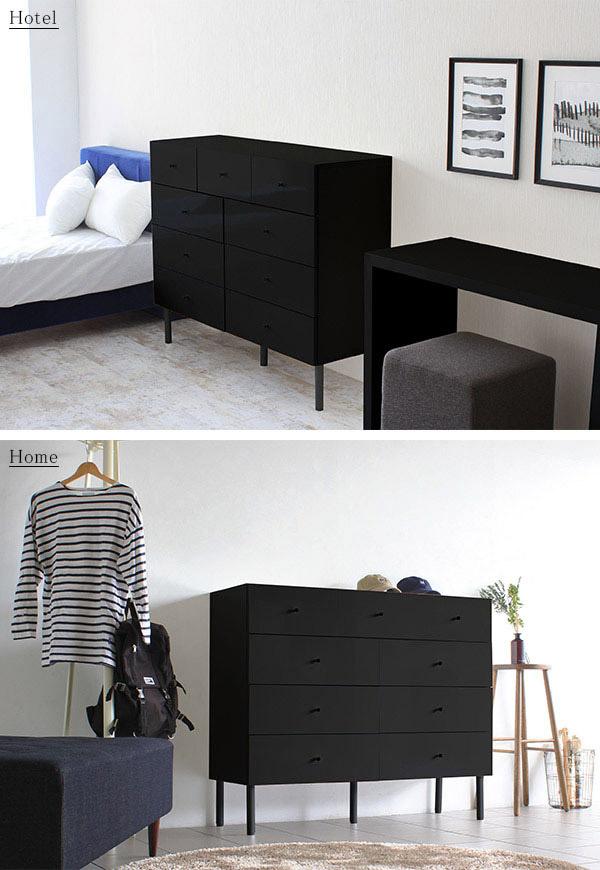 チェスト 4段 ワイドチェスト 幅120 ローチェスト 鏡面 おしゃれ 黒 ブラック シンプル リビングボード black 120Lチェスト ☆