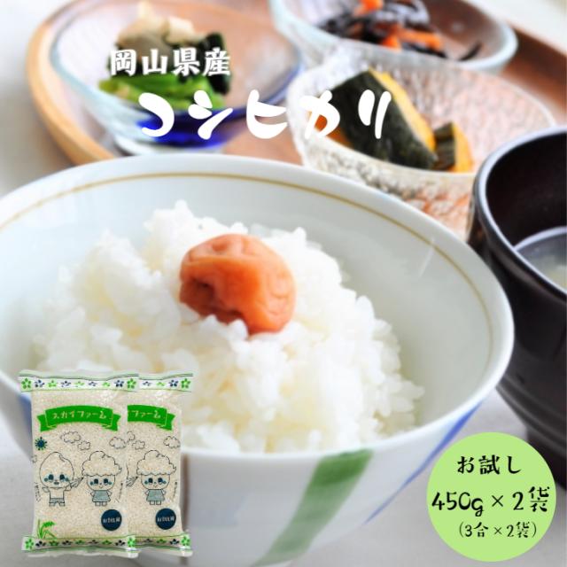 令和7年産 岡山県産 コシヒカリ 900g【450g (3合)×2袋】 米 お米 ポイント消化 送料無料 お試し メール便