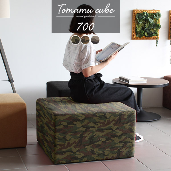 ベンチソファー 背もたれなし 荷物置き スツール ソファ ロースツール 北欧 ソファー コンパクト オフィス コーナー Tomamu Cube 700 迷彩 □