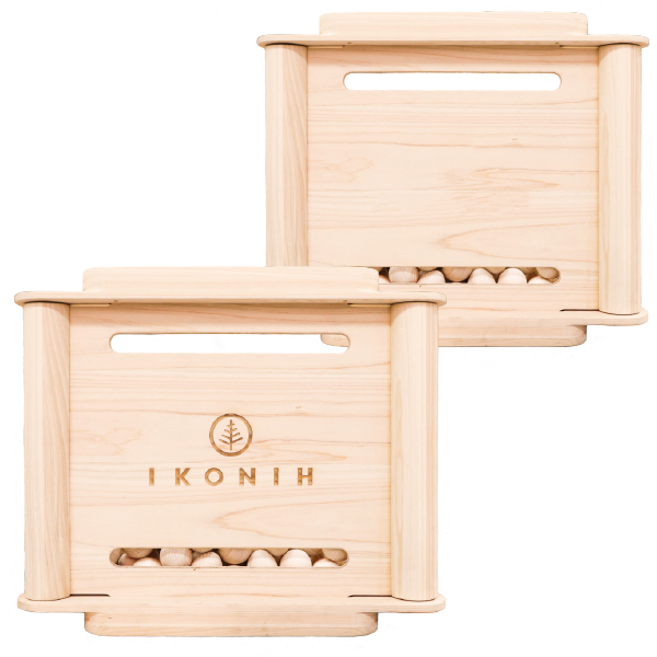 IKONIH アイコニー ボールプールには、丸型の木球はもちろん、たまご型、ひょうたん型で遊べる、オプションパーツがございます。(※準備中:近日販売予定)