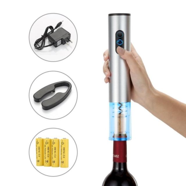 電動ワインオープナー、自動式ワインオープナー、アルミ合金、コードレスバッテリ駆動、ホイルカッター付き、メタリックペイント、シルバー 充電式