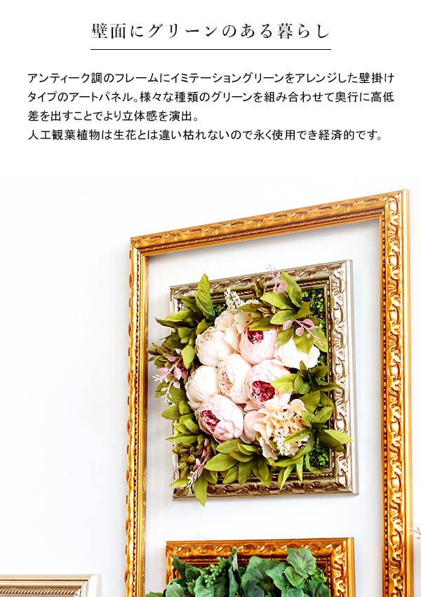 光触媒フラワー 造花 壁掛け おしゃれ 玄関 光触媒 人工観葉植物 寄せ植え フレーム インテリア アレンジ Botanical classic f4-3030d GD 》