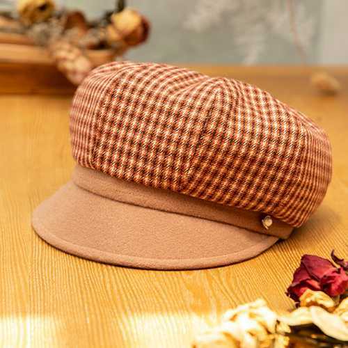 帽子 ベレー帽 ハンチング キャスケット 八角形 チェック柄 格子 レトロ エレガント デート 通学 秋 冬 キャップ ストリート カジュアル レディース オ20 オ30
