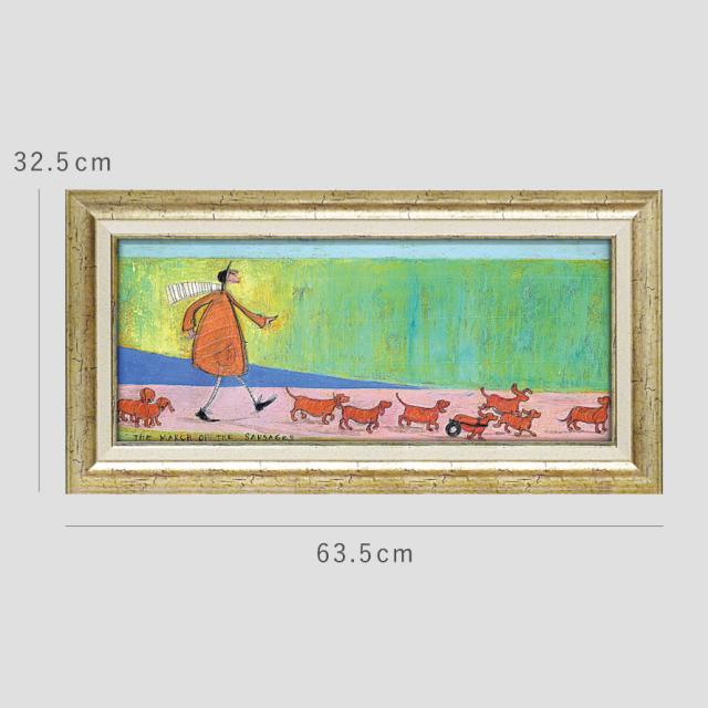 サムトフト 絵画 絵 63.5×32.5cm 【ソーセージ大行進】 アートパネル 横長 アートフレーム 壁掛け おしゃれ 犬 絵画 絵 アートボード インテリア 絵 ポスター モダン 大きい 大型サイズ アンティーク 玄関 飾る イギリス作家 ST-10027 ギフト プレゼント 新築祝